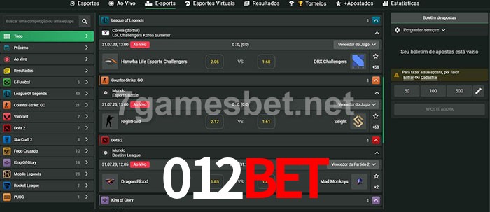 O 012bet oferece uma grande seleção de opções de apostas em e-sports com probabilidades competitivas